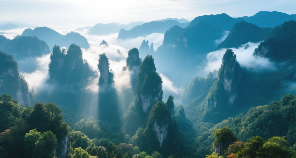 ✔️Zhangjiajie National Forest Park Explore the unique quartz sandstone peaks, listed as a UNESCO World Natural Heritage Site.