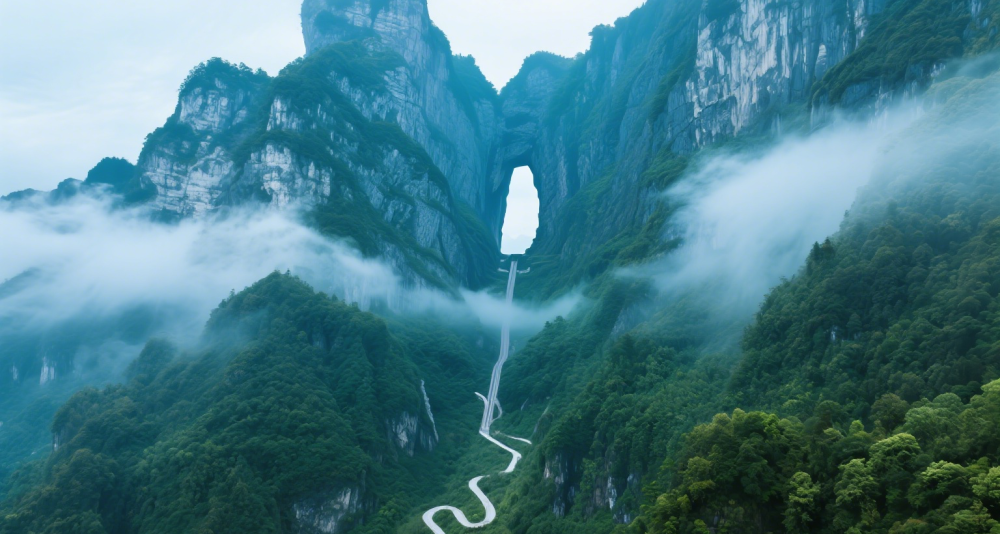 ✔️Tianmen Mountain National Forest Park Overlook the panoramic view of Zhangjiajie, experience the thrilling glass-bottom skywalk, and challenge your limits at high altitudes.