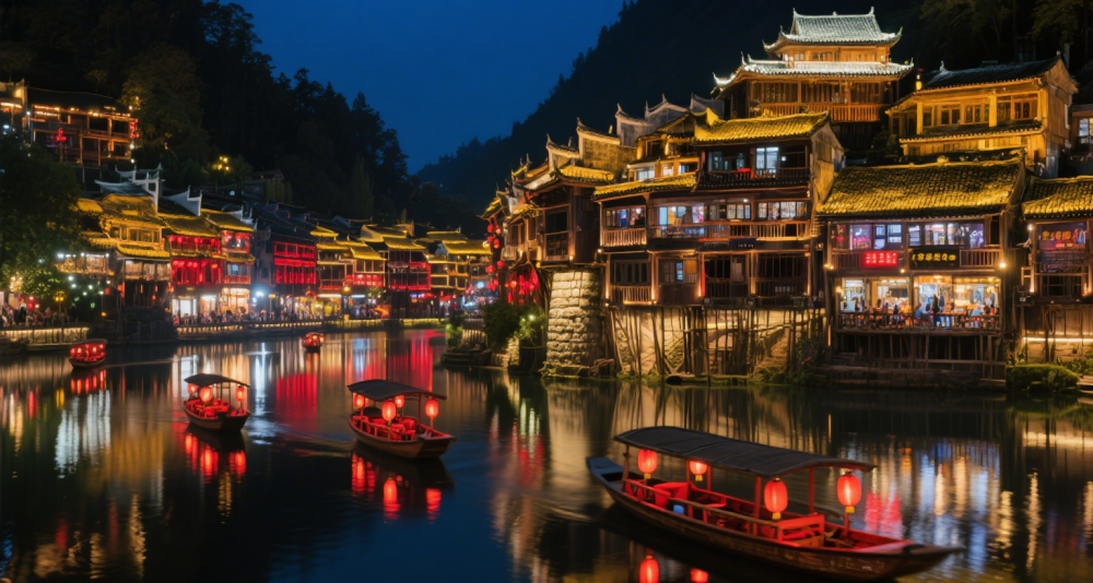 At about 20:50 p.m., we will start an exclusive experience : board a traditional wooden boat on Tuojiang Rive to watch the "Enchanting Xiang" Light Show, weaving Miao ethnic traditions with immersive technology, this visual spectacle is sure to leave a lasting impression.