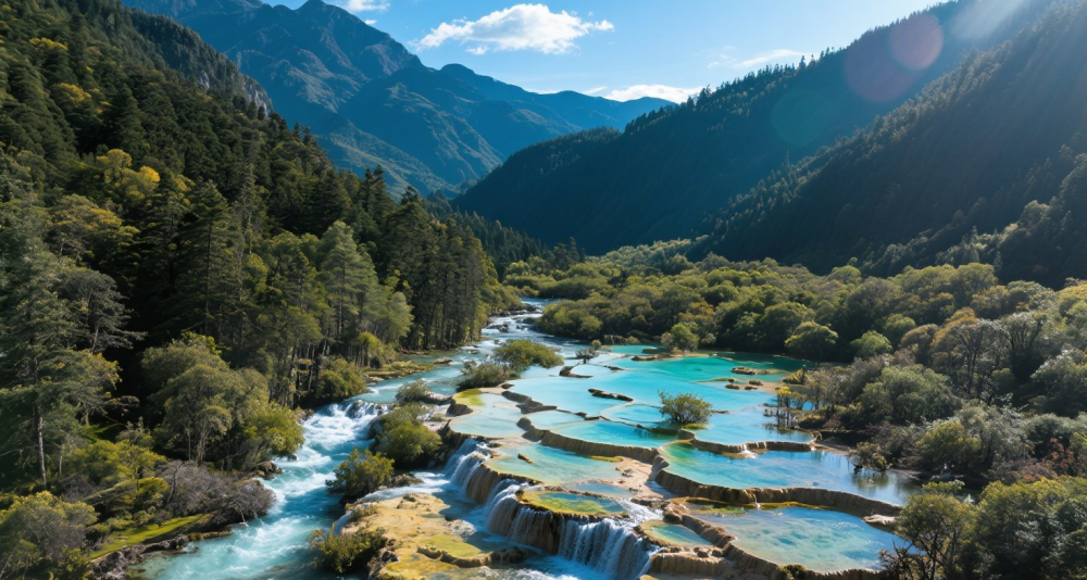 Huanglong Scenic Area- UNESCO World Natural Heritage site, Over 3,400 colorful calcite pools, creating Asia's largest travertine terraces