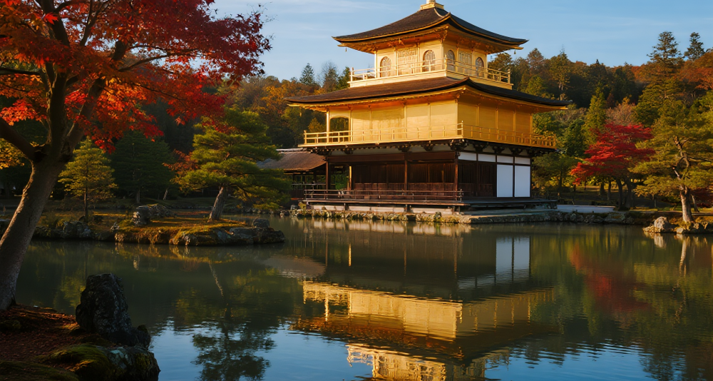 The official name of Kinkaku-ji Temple is Rokuon-ji Temple. It is affectionately known as "Kinkaku-ji" because the outer walls of the core building, the Shari-den Hall, are entirely decorated with gold leaf. The temple was first built in 1397 and was originally the villa of General Ashikaga Yoshimitsu (the prototype of General Yoshimoto in the anime Ikkyū-san), later converted into a Zen temple "Bodhi Place". Kinkaku-ji is best visited during the maple leaf season, when the golden temple combined with the red leaves covering the mountains creates a magnificent scene.