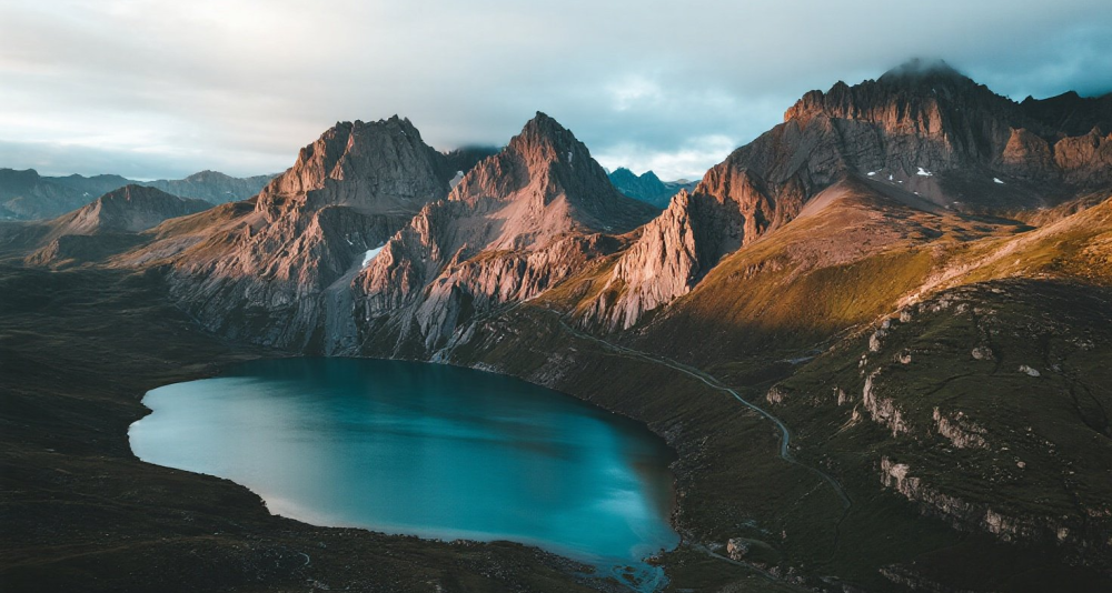 Continue to [Tu'er Mountain] in Daocheng, situated in the northern part of Haizi Mountain Nature Reserve. Viewed from afar, its peaks resemble rabbit ears standing upright against the wind. The mountain features extraordinary terrain with barren summits, surrounded by steep glacial-erosion peak forest topography contrasted against crystalline glacial lakes, creating a profoundly grand spectacle.