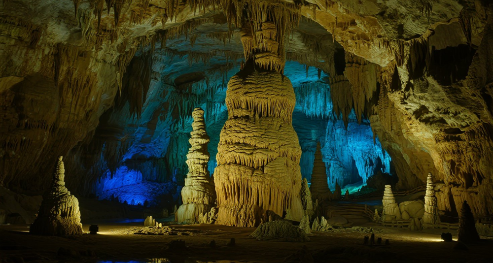 The Silver Cave is a typical karst landform, running through twelve peaks. It is a storied karst cave. The stalactites in the cave are like a galaxy, shining with silver - like light, hence the name "Silver Cave". Various types of cave sediment landscapes such as stalactites, stalagmites, stone pillars, stone curtains, stone drapes, stone flags and rimstone dams are in a great variety of shapes. The underground river in the lower layer winds through the mountains, with clear water where fish can be seen swimming, like a fairyland on earth.