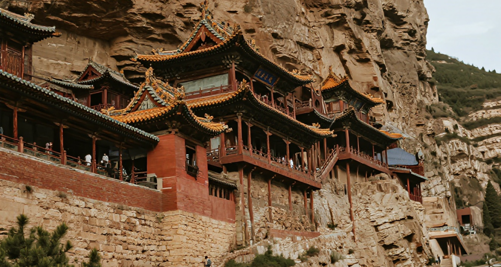 Xuankong Temple : Nestled on cliffs of Hengshan's Jinlong Gorge in Hunyuan County, Shanxi, this 1,400-year-old Northern Wei marvel perches 50 meters above ground. Its wooden framework clings to precipices above deep ravines. Half-embedded beams anchor into rock, with integrated pillars and interlinked corridors defying gravity. Surviving millennia of storms, its architectural ingenuity and mechanical principles showcase ancient artisans' brilliance. Recognized by TIME Magazine as one of the "World's Top 10 Most Dangerous Buildings," it reigns as Hengshan's premier wonder – a globally unparalleled spectacle!