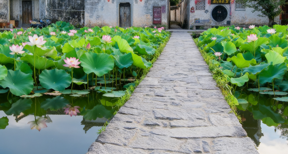 Yuezhao, also called Yuetang by the locals, refers to the "cow's stomach" or "cow's small belly" in folk terms. It is located at the center of the ancient village. This semi-circular pond anchors the ancient village as its central landmark. Encircled by Hui-style architecture with whitewashed walls and black-tiled roofs, its mirror-like waters reflect timeless Huizhou charm. Historically, only Hongcun's wealthiest and most prestigious families resided around Yuezhao Lake.